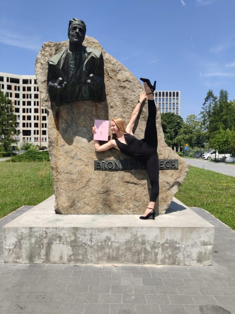Taniec w moim życiu istniał…od zawsze. Mama zapisała mnie na pierwsze zajęcia w szkole baletowej gdy miałam kilka lat i już wtedy ,,uczyłam” tańczyć moją siostrę i kuzynkę. Szkoła baletowa zawsze byłam dla mnie najważniejszym punktem dnia. Gdy w wieku 13 lat starałam się z wizją, że więcej już tańczyć nie będę mogła…zakołysało niebezpiecznie moim zdrowiem psychicznym. Więc wróciłam! Zdałam dyplom zawodowego tancerza, uczestniczyłam w ogromnej ilości warsztatów, a następnie wyjechałam tańczyć za granicą na programach dla młodych tancerzy w Budapest Dance Theater oraz Gangaray Aristic Programme.